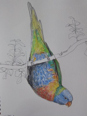 | Upside down! Rainbow lorikeet, a.k.a 五色青灰鸚哥 goshiki-seigai-inko!! |