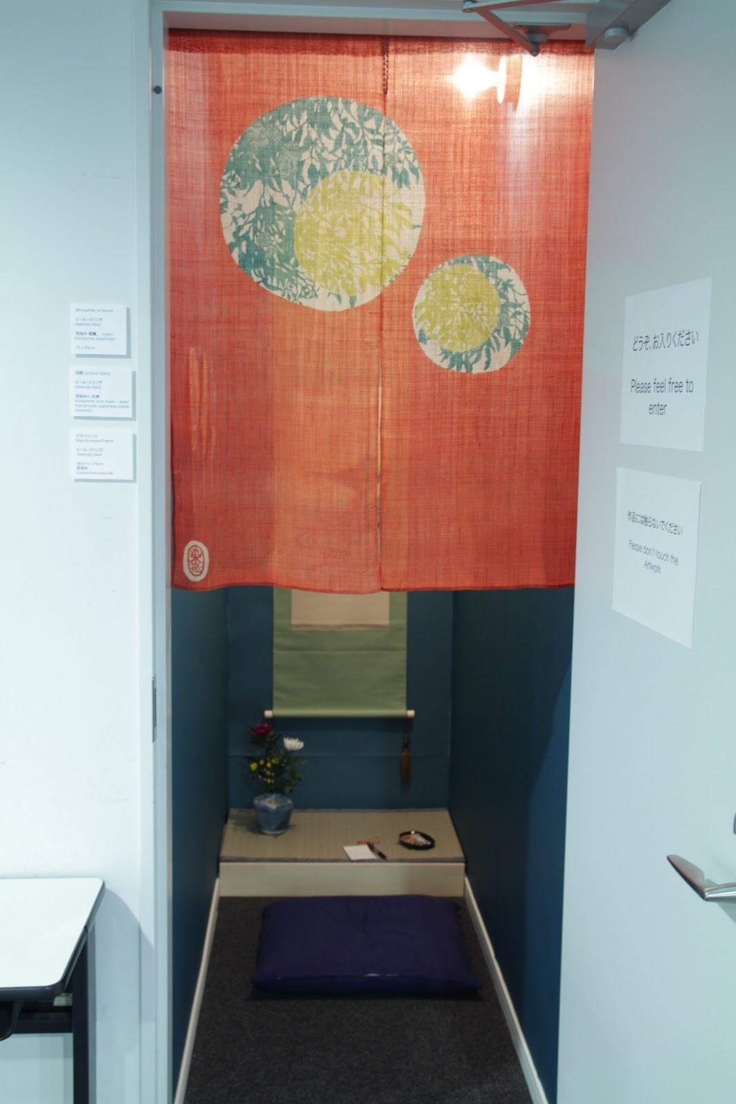 I was allocated the 3rd floor storage cupboard beside the elevator. It’s a narrow and airless room but it’s in a location that has a lot of students and staff walk by. At first I wasn’t sure how I could use this unusual space to display my work. I decided to create a relaxing space, in the style of a tokonoma.