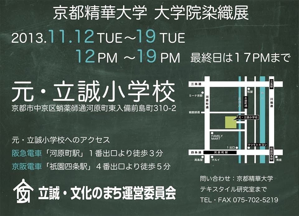 And so it’s onward to the next exhibition!! Coming up so soon it’s frightening is this group exhibition I am a part of with the 5 other Textiles Master’s course students, “How How”. It runs November 12-19 in Kyoto and more information can be found