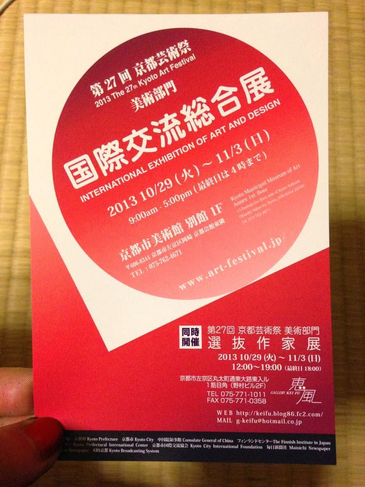 この6日間、新作が京都市美術館の別館で行われた「国際交流総合展」に展示していました。日本の作家と色んな国から来た作家による展覧会でした。