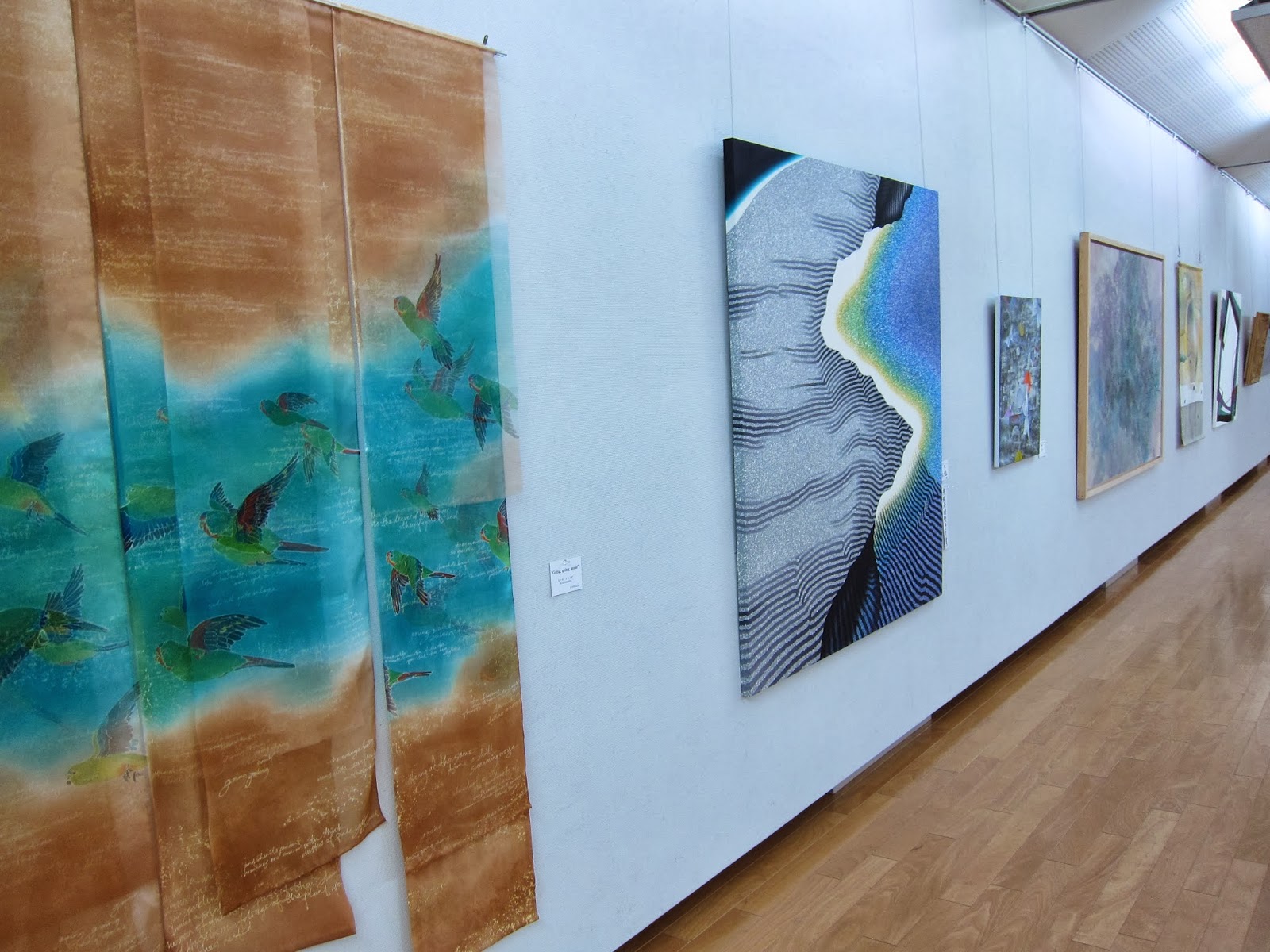 | view of the exhibition. My work was next to a roketsu wax-resist work by Kobayashi Shoko. |