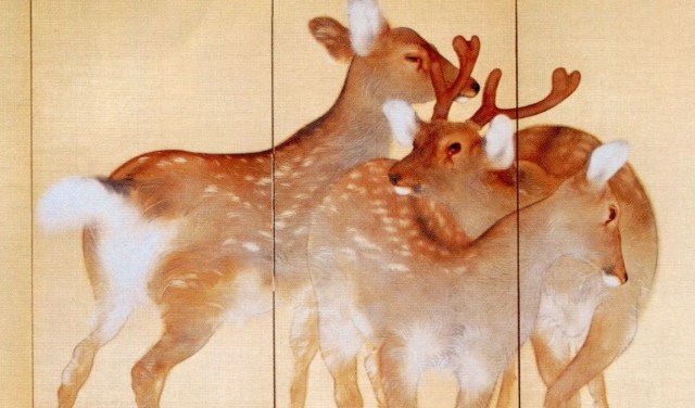 Another thing which simply doesn’t translate in a book is the level of detail. That’s something I really enjoy about Nihonga; whilst paintings can appear to be abstract upscaled versions of smaller paintings, they almost always incorporate some areas of intricate detail. This large folding screen painting of deer was just such an example. Upon closer inspection, their fur is so realistic! Fluffy deer!