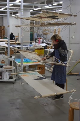 So I tried going bigger this time and in the end the work came out to be 180cm tall by 360cm wide. Because of fabric width limitations and also because I enjoy the movement of fabric in spaces, the work is made up of 6 free hanging panels of a lightweight natural-coloured linen fabric.