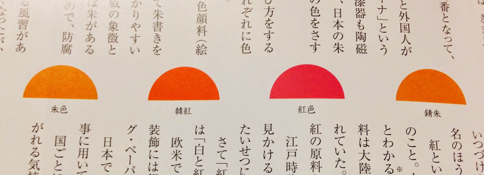 最近、「日本の色」という本を貰いました。ツルツルのページに色のサンプルがぎっしり並んでいて、漢字での名前とその色の歴史も書いてあります。