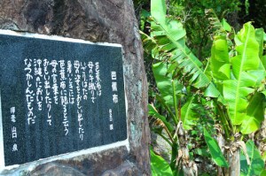 | plaque outside the Bashofu Hall, tells of how bashofu knowledge was something passed from mother to daughter. |