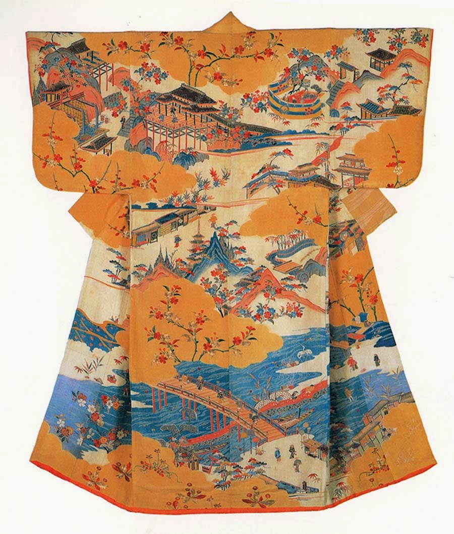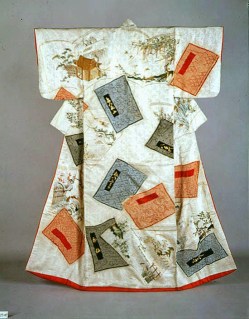 Despite the rules, (in terms of kimono these are probably just perpetuated and perceived rules, not as hard and fast as some would have you believe) there are some fantastic examples of fun, unique and sometimes just plain wacky kimono even from the Edo period (1603-1867). We are so used to the serene and conservative kimono of today that some of these designs seem pretty edgey. We tend to forget that there has always been innovation and boundary pushing; in every generation.