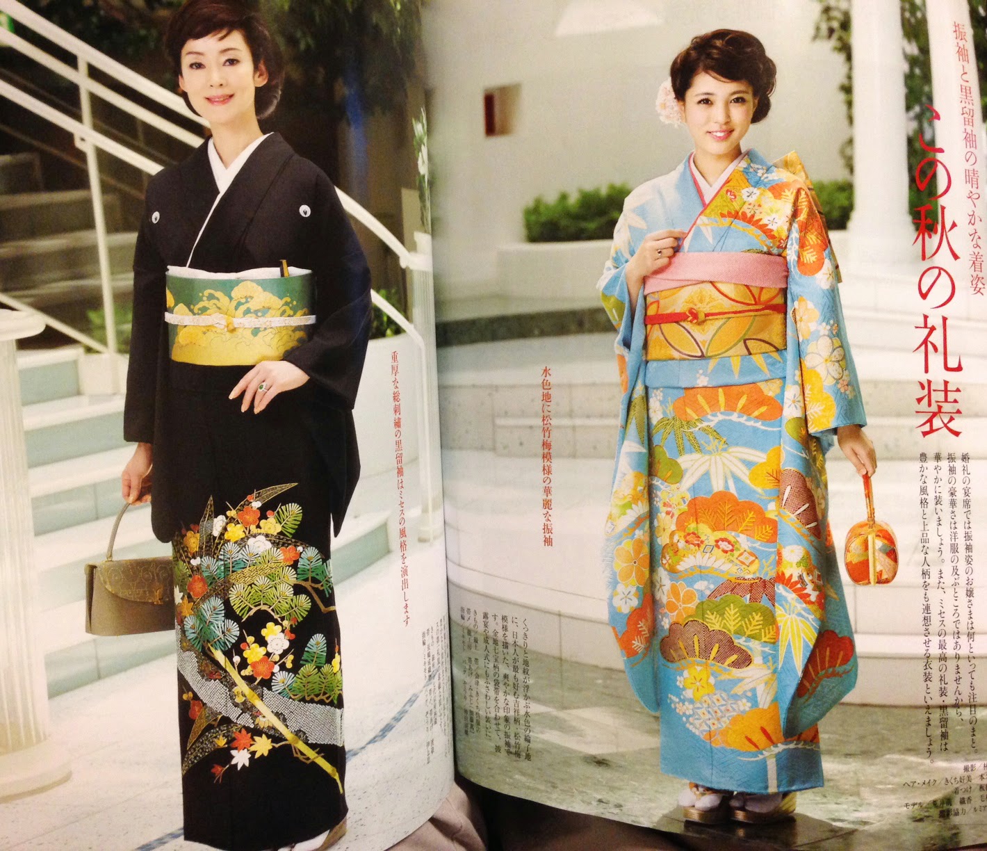 | the age of the wearer determines various features of formal kimono: brightness, size of motifs, level of decoration, sleeves…and on and on… 年齢によって礼儀もかなり変わりますね。袖、色合い、模様の位置など。 |
