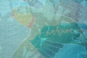 A second trick I included again here was “tataki-nori” is a way of flicking or dotting resist paste onto the surface of the fabric to make a speckled pattern. I used it this time to mask out areas of the design that were supposed to represent habitat degradation. (I don’t think this came through strongly, though) It’s a nice technique to introduce textures because katazome and yuzen are so often about clear lines and edges.