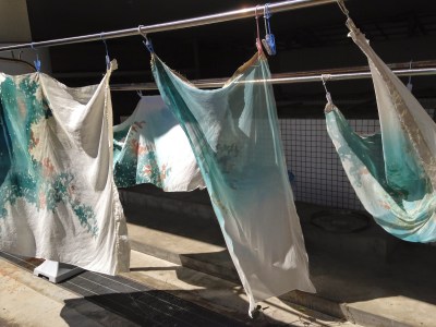 いつか将来に作りたいの一つは「染色インスタレーション」なのです。「インスタレーション」という言葉がこの頃使われすぎで、意味なくなるぐらいように色んなものがインスタレーションと呼ばれています。(何も置いていない暗い部屋がインスタハレーションだとか、古い工場の床に散らされたゴミがインスタレーションだとか)