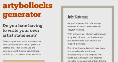 | An old favourite, http://www.artybollocks.com/ which generates random artist statements and shows you just how meaningless they really are |