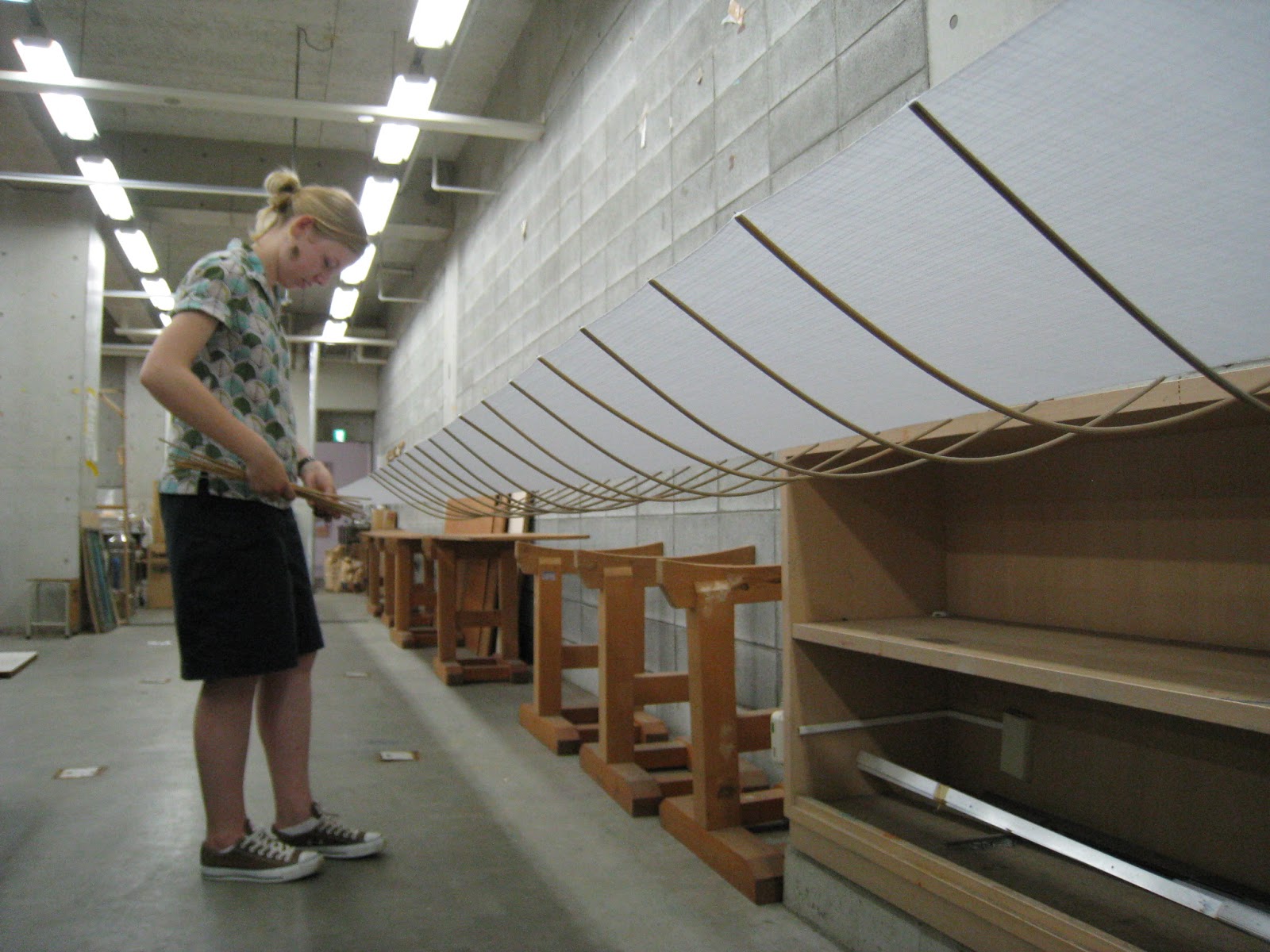 There are many specialised businesses in Kyoto, for example, which have operated as family-run enteprises for some hundreds of years. They each have their own niche of the textile process to support; the nori (resist paste) manufacturer and shop, the shinshi (bamboo stretcher) specialist, the kimono-width silk salesroom, the specialised craftsmen making circular punches for intricate stencil carving…More and more these businesses are struggling to survive. With the demise of the kimono as daily and common wear, these businesses that thrived and supported the kimono industry now have little patronage to subsist on. If I were still in Kyoto, I would continue to support these businesses with my own hard-owned yen and utilise them in my artwork but I fear even that is simply not enough.