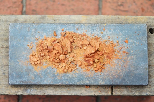 Mostly, I’ve smashed, sifted, ground, re-sifted and re-ground rocks to get these colours. Some rocks give themselves up easily, crumbling after one strike. Others are like trying to shatter steel.