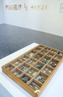 Here are a few close ups of the work I exhibited. You’ll see works on paper – these are all made with my pigments mixed with soymilk, applied to kozo washi. I also tried the pigments on different weights of silk, in an installation piece depicting Eucalyptus Cinerea foliage. Finally, I wanted to display my vials of pigment in the manner of a old fashioned museum, you can see this in the wooden box in the pictures.