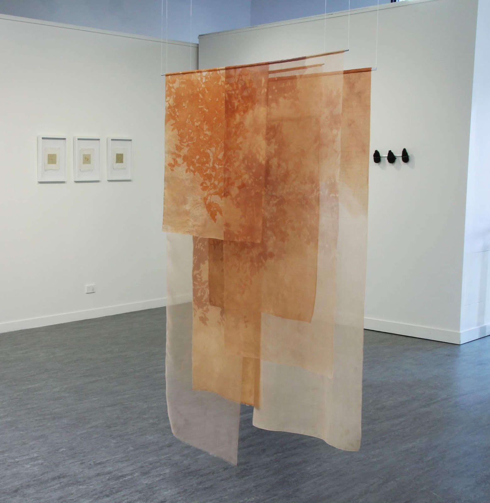 The most exciting part of this whole experiment has been to do what I first intended – use these colours I’ve collected as pigments for katazome. The chance for this arose when an exhibition was borne of Craft ACT Spring Residency at Tidbinilla last September. The show wrapped up this past weekend at the Tuggeranong Arts Centre in Canberra. The work all came together beautifully, without intending to, all four of us artists used complementary textures, colours, as well as references to stones and foliage. Narelle Phillips at the Tuggeranong Arts Centre did an excellent job of curation and organising everything.