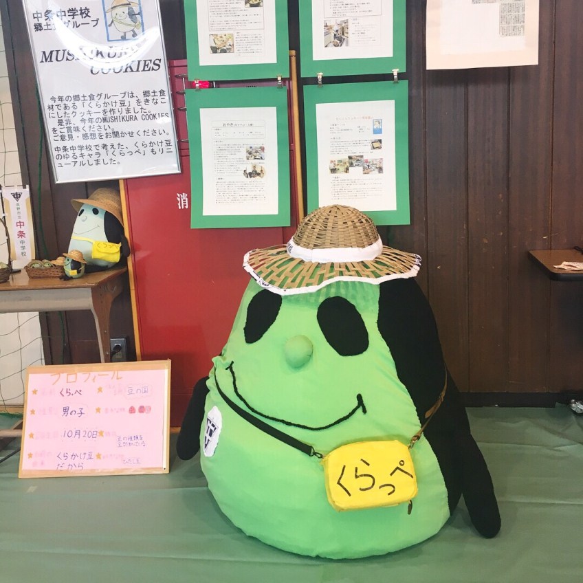 Another feature at the school festival- Kurappe the town mascot. A bean, of course